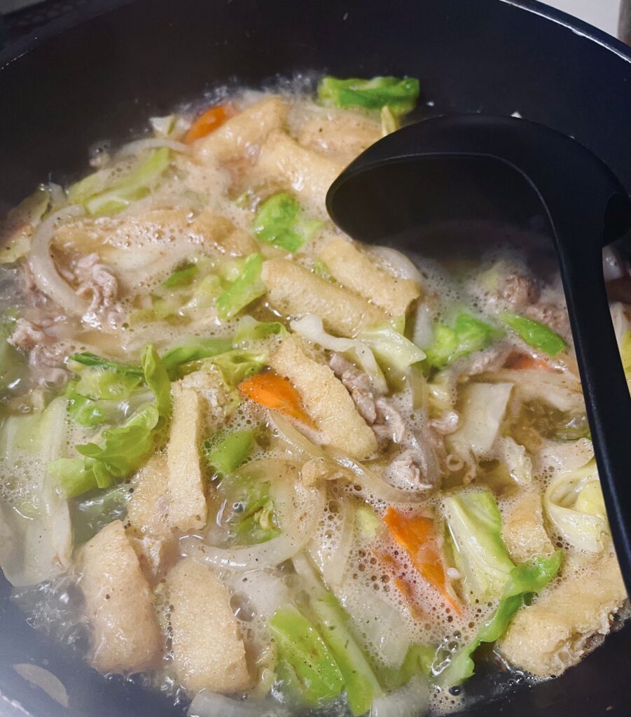 そこで具材をふつふつやって、母からもらったお味噌を溶けばめっちゃおいしくなって気軽〜〜!✨